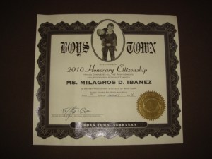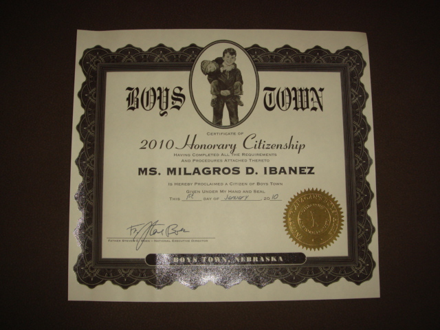 Being named as an Honorary Citizen of Boys Town, and although I have not been there, I felt a strong bond connecting me with these children. A meager amount I had been sharing, is nothing compared to the hard work and dedication of Fr. Flanagan since 1917, and when he died in 1948, his successors continued his legacy.