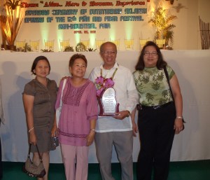 The venue was the ABL Building inside the Aklan Provincial Capitol complex. I could not contain the happiness I felt, being in the same place with important and distinguished persons like the congressman, the governor, the vice governor, and the award recipients, to name a few. To top it all, I shared the same table with a fellow Lezonian, Mr. Mel Cichon, a poet and creative writer par excellence, who was one of the six honorees to receive an award; and Arwena Garcia Tamayo, my high school classmate and a known Aklanon poet/writer.